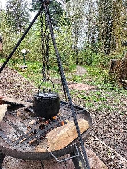 Chittiesmaking vegetarian stovies in the Blarbuie woodland