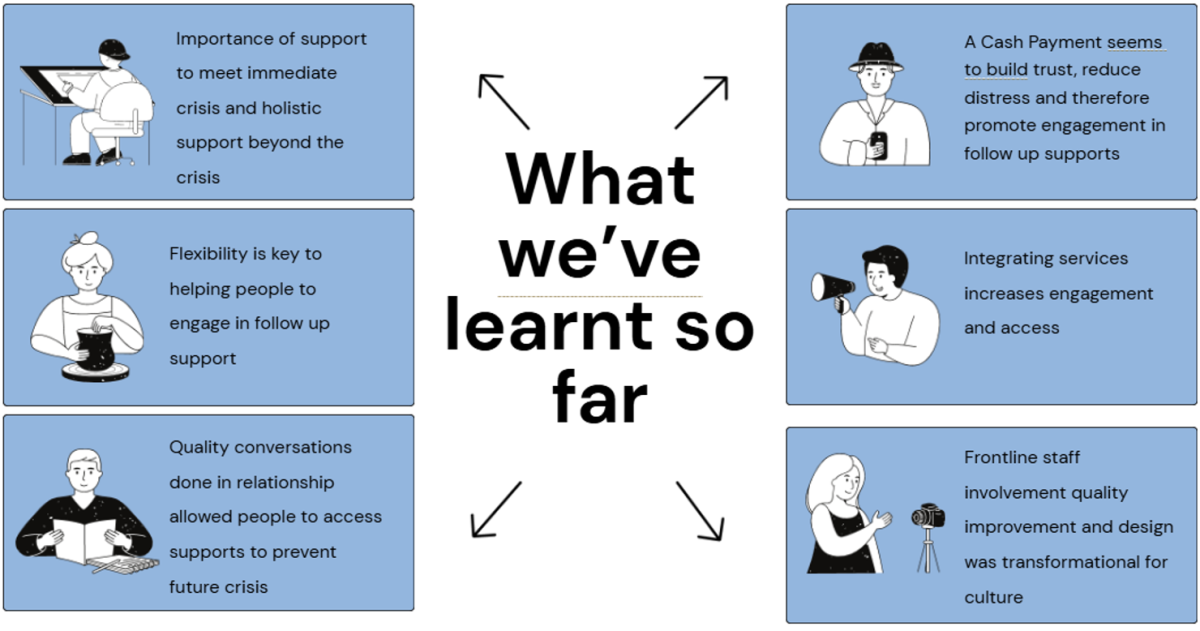 The cash payment is best seen as one part of a toolkit to provide a more effective response to someone who is struggling for money, or other aspects of their life